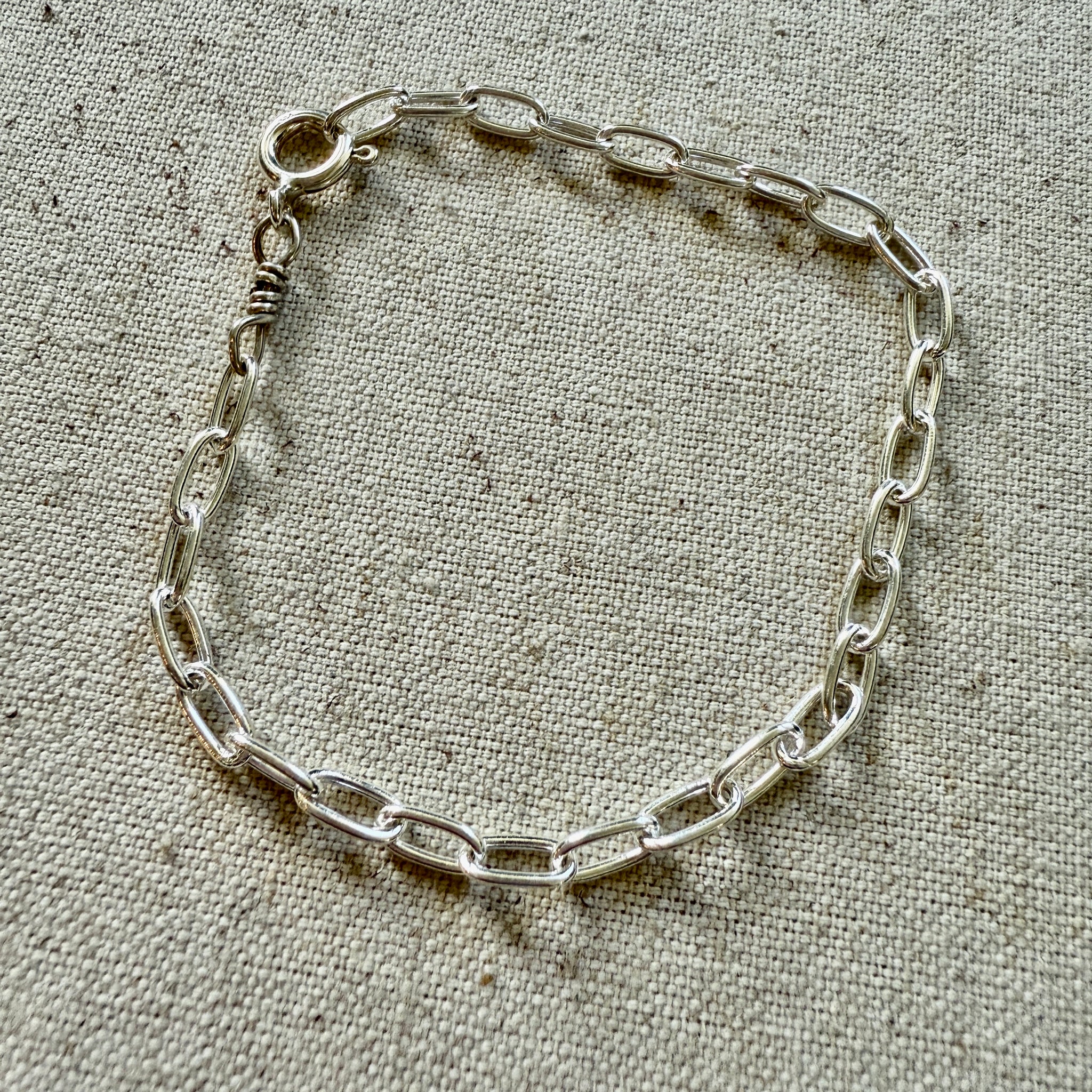 Simple, easy to wear and looks great grouped with other fun bracelets! A must have! 7 1/4" in length, sterling silver